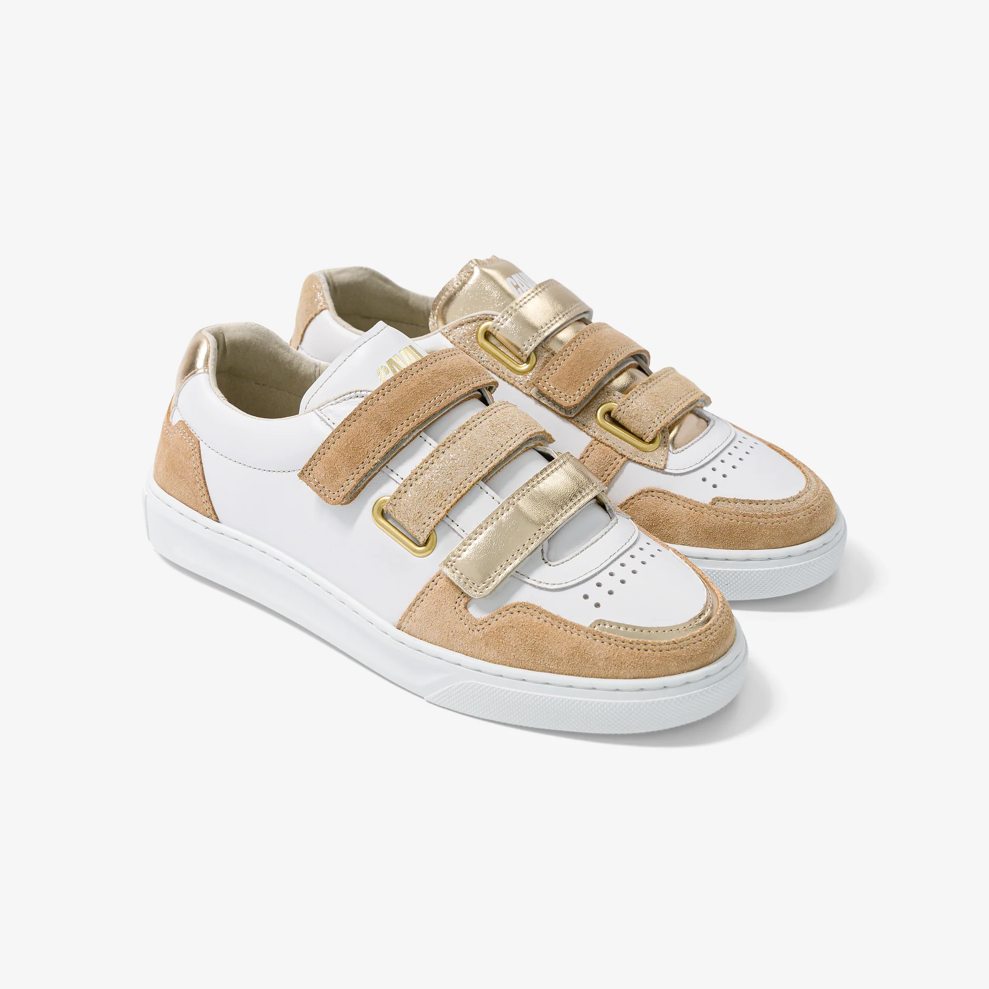 Asymmetrischer Sneaker mit Klettverschluss – schnell angezogen, ohne Schnürsenkel. Die drei Klettverschlüsse setzen ein verspieltes, farbiges Statement.