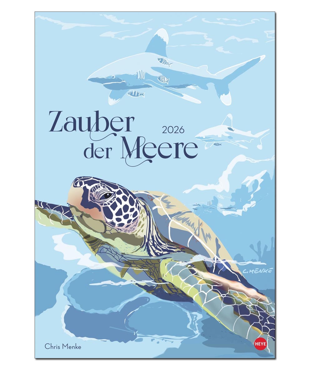Mit dem Monatskalender „Zauber der Meere“ 2026 tauchst du in eine geheimnisvolle Unterwasserwelt voller exotischer Fische und Schildkröten ein. 12 modern illustrierte Motive in kräftigen Farben von Chris Menke bringen poppiges, maritimes Flair an die Wand (37 × 53,5 cm). Ein dekorativer Begleiter fürs stilvolle Zuhause – und ein originelles Geschenk für Tier- und Kunstfans (Heye / Athesia Kalenderverlag).