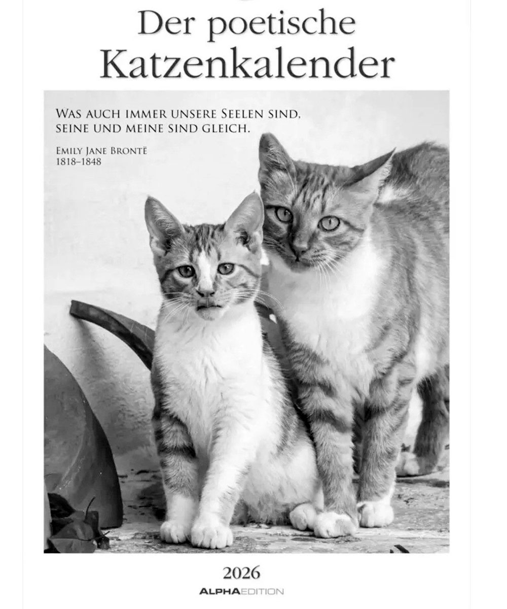 Der legendäre Poetische Katzenkalender 2026 umfasst 54 Seiten mit 56 farbigen Illustrationen und bringt Woche für Woche charmante Katzenmomente an die Wand. Im handlichen Format 305 × 210 mm passt er perfekt in Küche, Flur oder Büro. Mit seiner hochwertigen Gestaltung und den liebenswerten Fotografien sorgt er das ganze Jahr über für ein kleines Lächeln im Alltag.