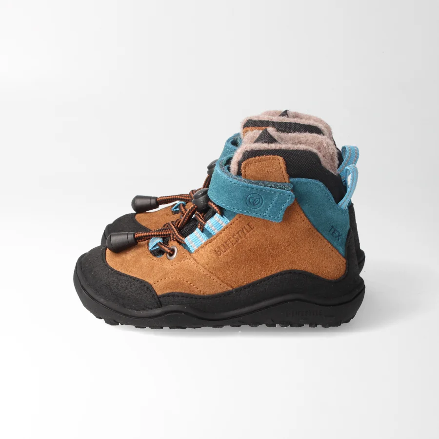 Allrounder Barfuß-Wanderschuh für kleine Naturentdecker! Wasserfest dank TEX-Membran, robust durch Bio-Veloursleder mit Abriebschutz und sicher durch die rutschfeste Profilsohle – dieser Schuh ist gemacht für Abenteuer bei jedem Wetter.