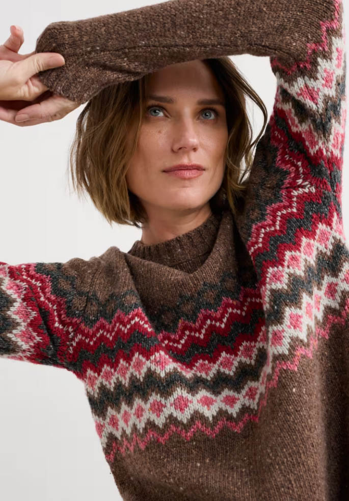 Moderner Twist auf das klassische Fair-Isle mit ausgewogenen, kräftigen und hellen Tönen – verspielt und doch geerdet.